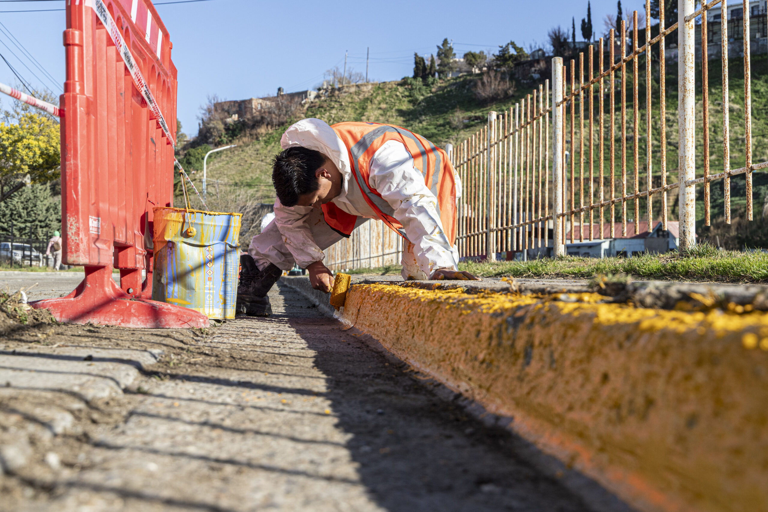 El Director General de Parques y Paseos, Gustavo Camino, supervisó los trabajos que consisten en la pintura con señalización amarilla de los cordones y la colocación de cartelería, con el objetivo de delimitar de forma clara los espacios permitidos y restringidos para estacionamiento.