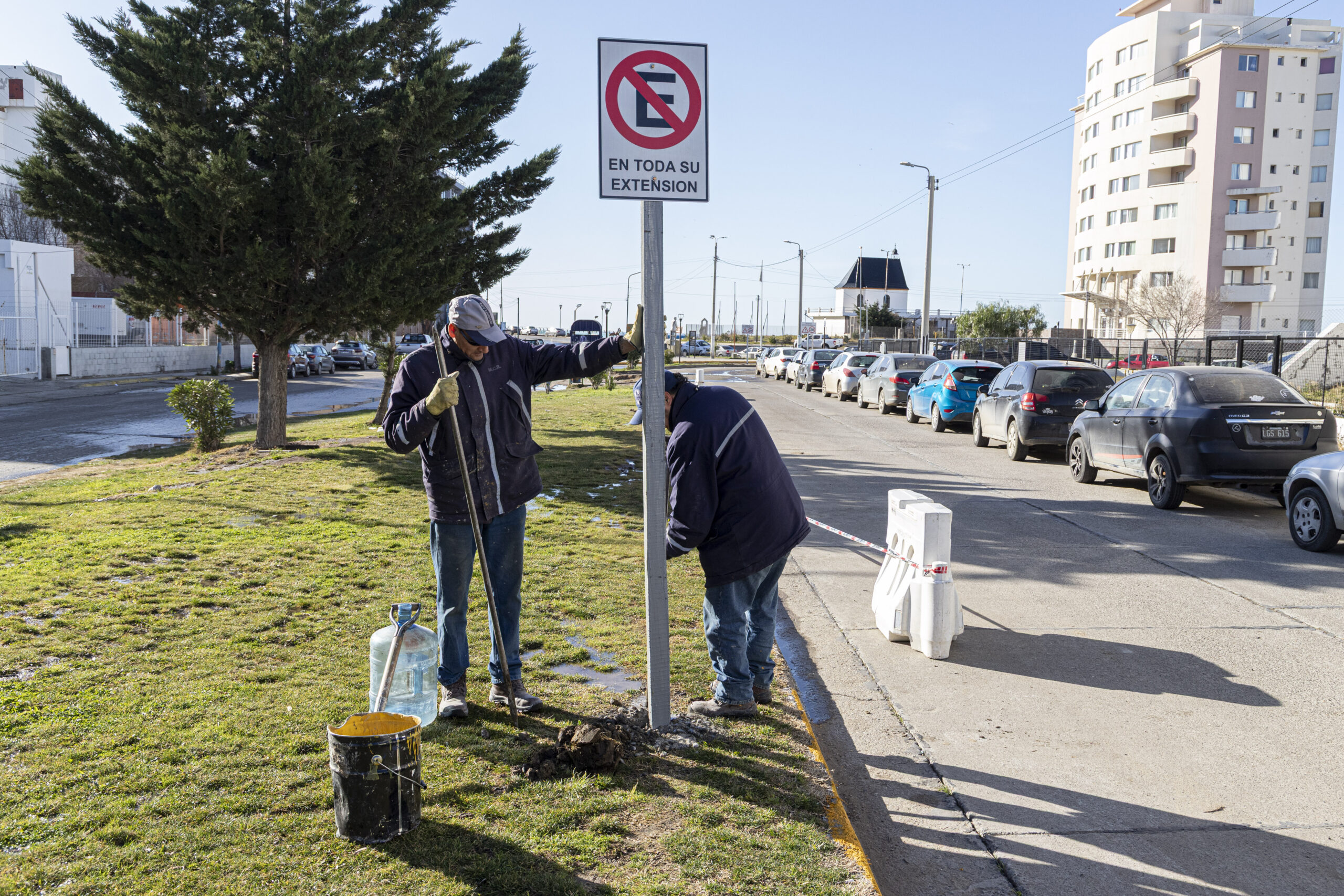 En el marco del plan de ordenamiento vial impulsado por la Municipalidad, a través de la Dirección General de Parques y Paseos, se llevan adelante tareas de demarcación y señalización en el boulevard ubicado frente a la Escuela de Bellas Artes, en la zona aledaña al Hospital Regional y otros edificios públicos.