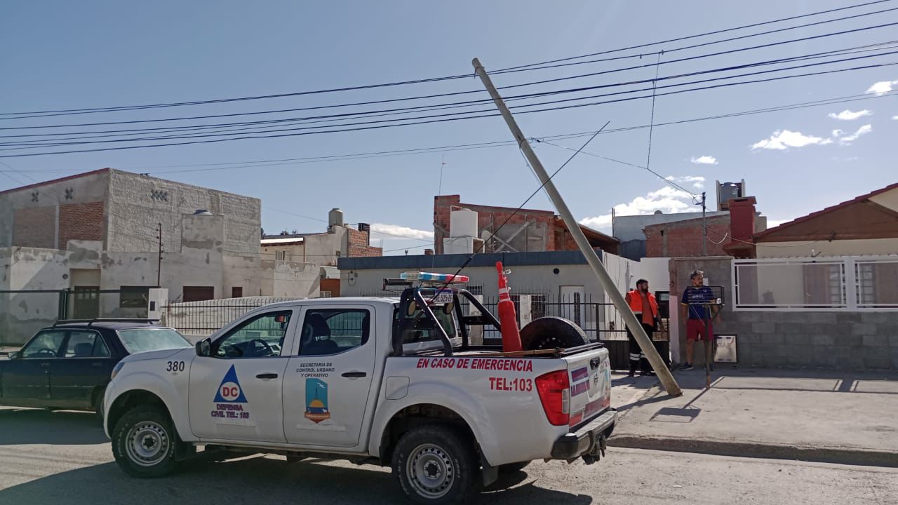 Asimismo, se intervino en diversos lugares, donde postes de energía fueron inclinados por las fuertes ráfagas. También resultaron afectados carteles y tramos de cableado en la zona céntrica.