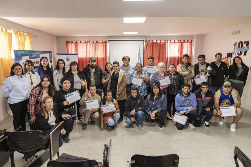 Mientras que al dirigirse a quienes accedieron a la capacitación dijo: “que ustedes hayan finalizado este curso demuestra compromiso, ganas de crecer y de seguir avanzando en nuevos objetivos”. Para finalizar, subrayó la importancia del trabajo articulado entre instituciones y agradeció el acompañamiento de las familias y de Comodoro Conocimiento.